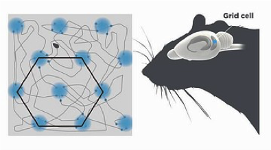 1971年にロンドン大学のオキーフ教授がラットによる研究から脳の海馬の中で部屋の中のある特定の場所にいるときにだけ反応する場所細胞(下の図)を発見した。ある場所に近づくと発火が速くなり、遠ざかると発火が遅くなる。ラットが移動すると順々に反応する細胞が移動する。また、場所細胞はラットの海馬には10万個以上もあり、部屋ごとに記憶をしている。この場所細胞がその後の研究で人にも存在することがわかっている。
