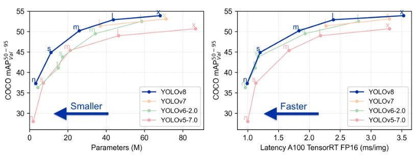 YOLO (You Only Look Once) は物体検出の代表的なアルゴリズムで、物体を見つけてバウンディングBoxで囲ってくれる。YOLOv1は2015年に発表されており、YOLOv8はUltralytics社より2023/1に発表された。ソースと環境一式がGithubで公開されており、商用利用は有償ライセンスが必要である。Repositoryで説明されている性能を見ると、モデルサイズを小さく、高速に、それでいてこれまでのYOLOよりも精度が良いと報告されている。